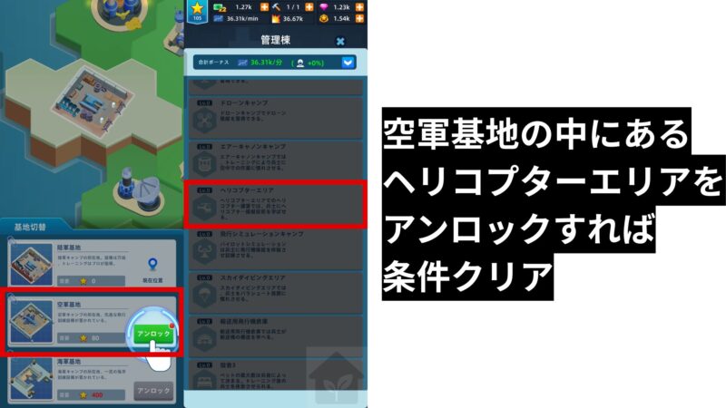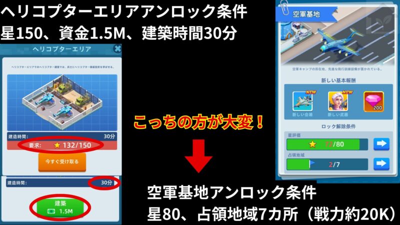 ヘリコプターエリアアンロック条件:星150│資金1.5M│30分待ち