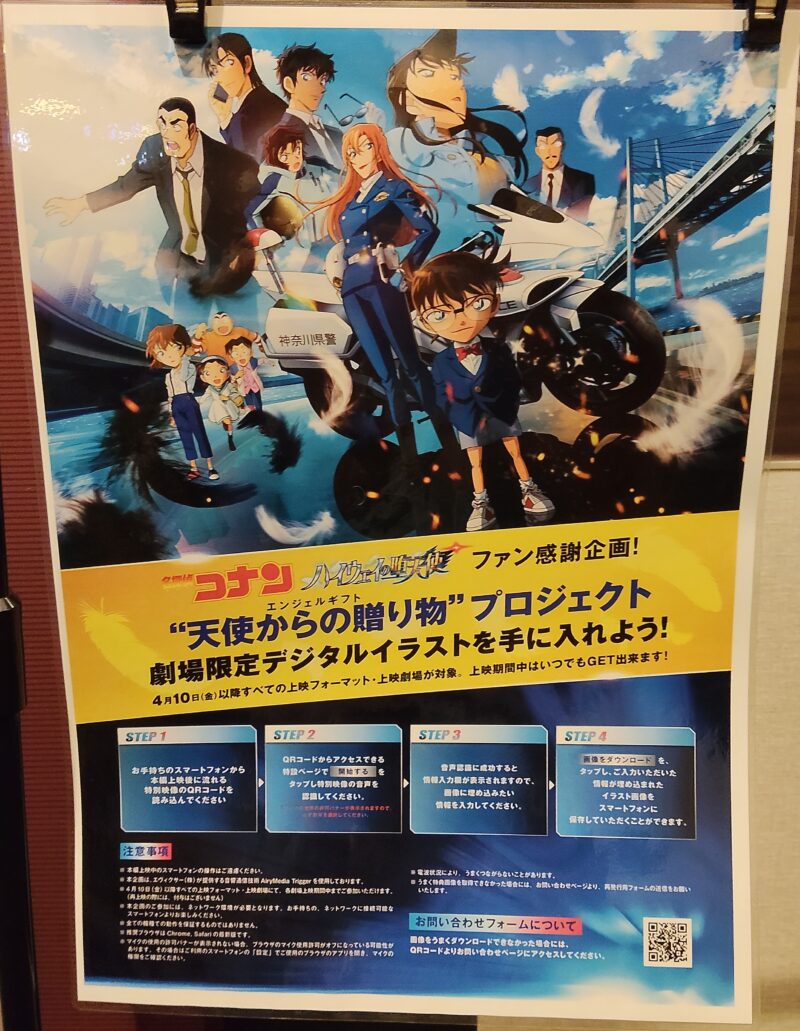 あと今回の映画の最後にデジタルイラストがもらえる画面が表示されました。画面に表示されるQRコードを読み込んで、表示されたサイトに映画館の音を取り込めば準備完了。映画を見た回数を選べばデジタルイラストがダウンロードできます。