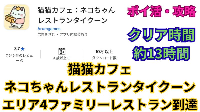 【ポイ活・攻略】猫猫カフェ:ネコちゃんレストランタイクーン│エリア4ファミリーレストラン到達│13時間